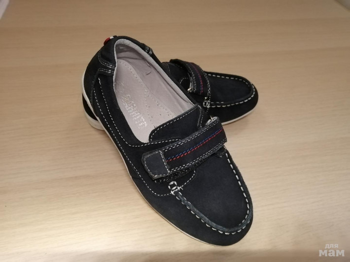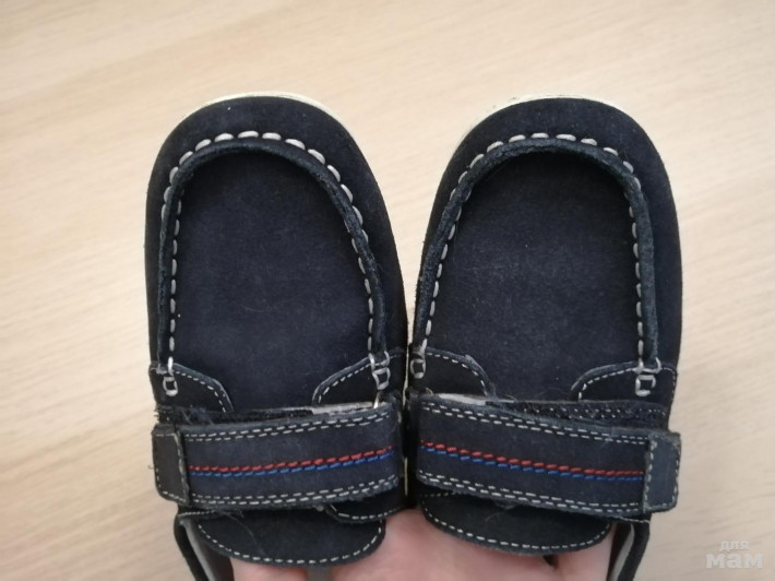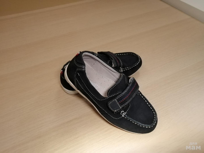 Мягкие мокасины из натуральной замшевой кожи. Внутри кожаная стелька. Размер 32, но если смотреть на таблицу размеров, получается маломерят на размер. Длина стельки ровно 20см. Состояние хорошее, подошва не стоптана. Сын носил как сменку на занятия. Ножки в них не устают, мокасины гнутся очень хорошо (см. фото), заломы не появляются.