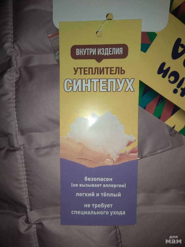 Ткань верха курточная milky с проклеенной термострочкой, не позволяющей пуху мигрировать, подкладка- флис, утеплитель- синтепух.