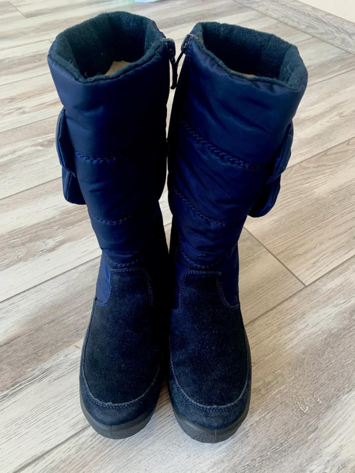Тёплые зимние сапоги выполнены из Натурального нубука высокого качества в сочетании с Итальянским болонием MAC. декорированы по бокам бантами и стразами, внутри шерсть. Предназначены для зимней погоды от 0 до – 25 градусов.