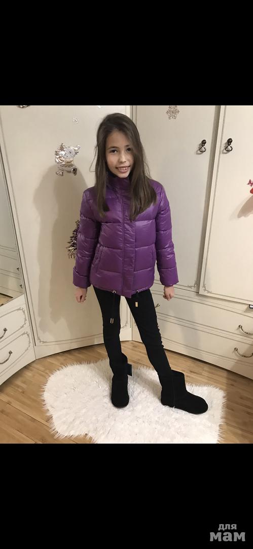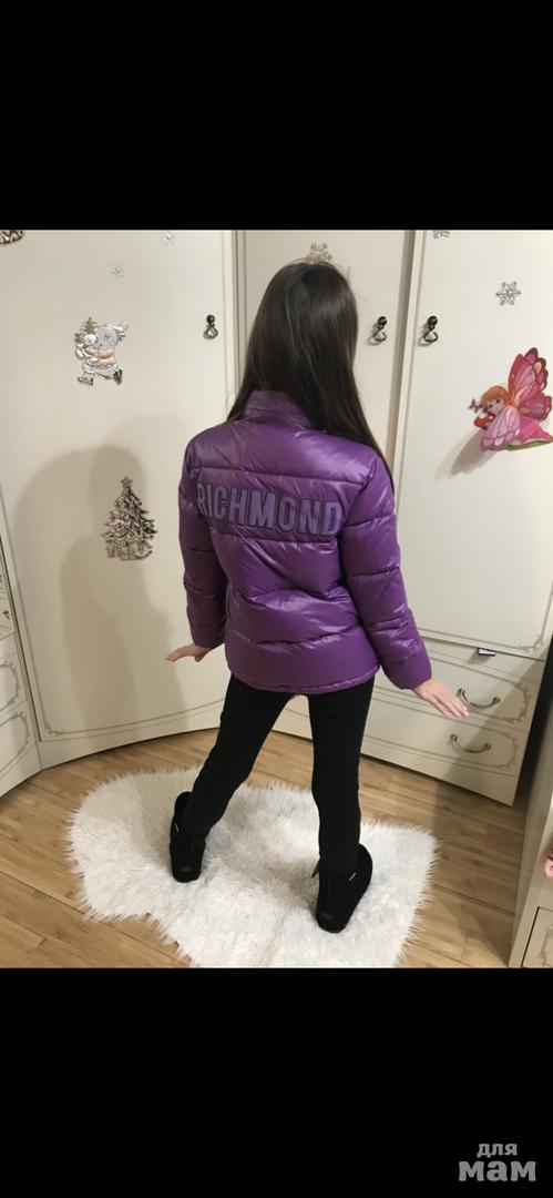 Richmond 12л., но маломерит! До 145 максимум. Одели пару, так как купили уже впритык (( Длина по спинке 51см., рукав с манжетиком от плечика 52см., в груди 42см. 90% пух утки, тёпленькая (полноценная весна/осень. Есть капюшон в воротнике)