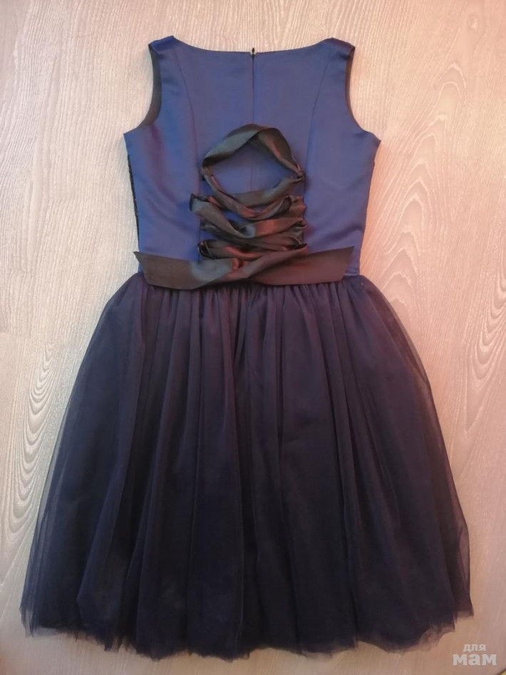 В отличном состоянии. Сзади молния, шнуровка из атласной ленты, можно подогнать полноту. Цвет темно- синий, на фото отсвечивает. Фото на ребенке-реальный цвет.