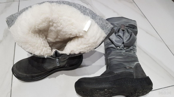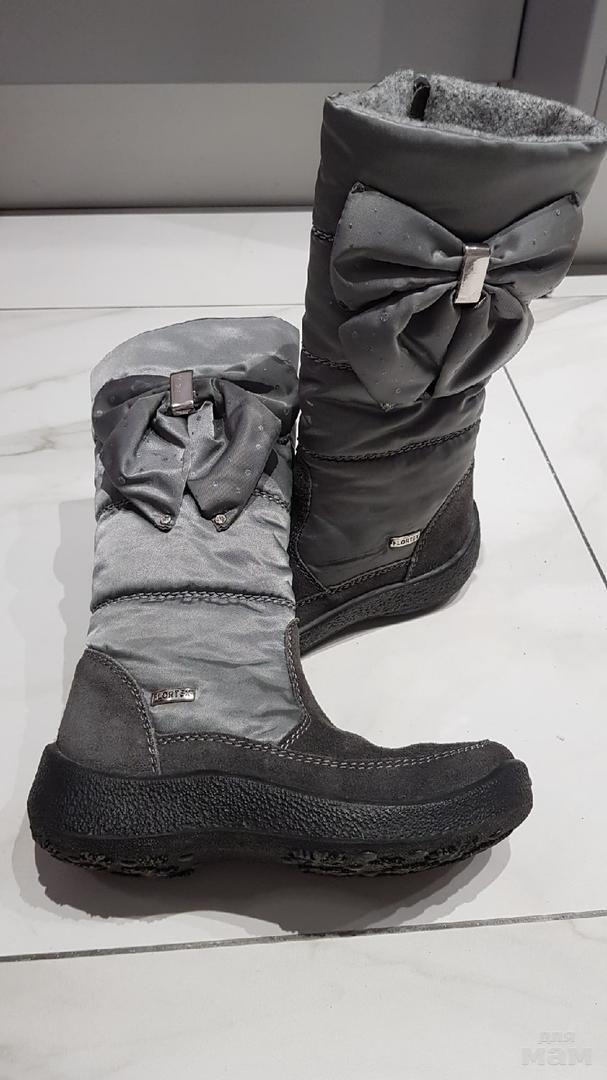 В отличном состоянии, мало носили, ножка выросла. Размер 33. Продаю за 2200 руб, блики на фото это от вспышки камеры.