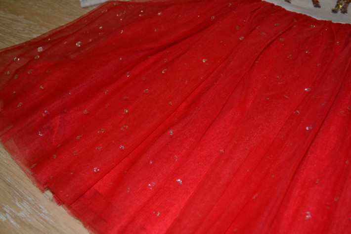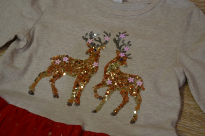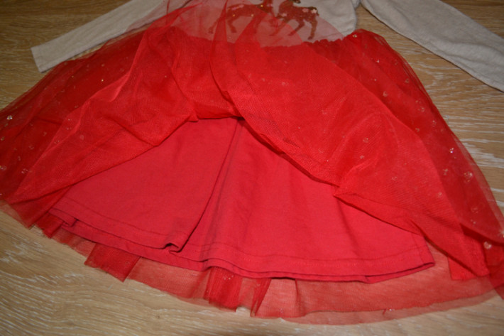 🍭Платье с оленями Acoola. Верх- трикотажный(как у лонгов) хлопок, низ - два слоя мягкого фатина и трикотажная подкладка внутри. Состояние хорошее, только на фатине горошки из блесток частично осыпались после стирки.