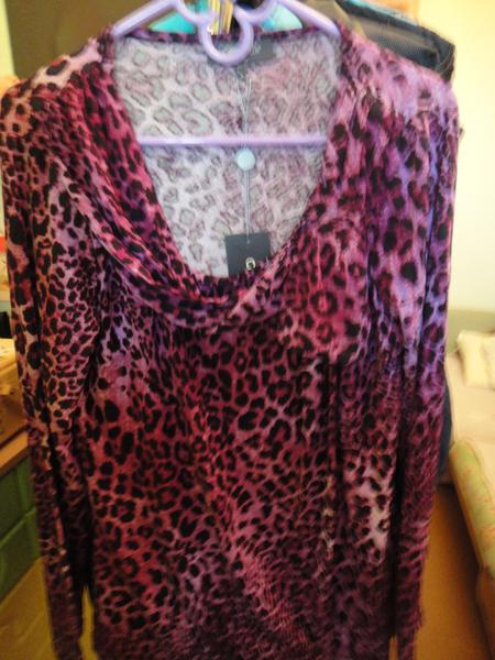 Новая леопардовая кофточка Camomilla love, р.48. Состав: 92% вискоза, 8% эластан. Красивый и интересный воротник (не знаю как его сфотографировать, чтобы передать то, как он выглядит)- круглая горловина + воротник "хомут" с имитацией полубанта сбоку слева. Длина - 62 см.