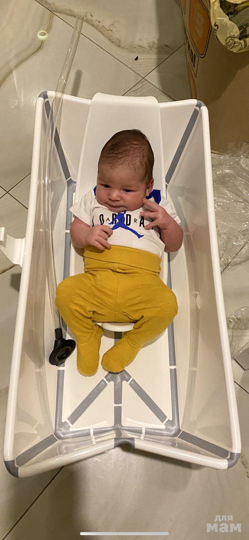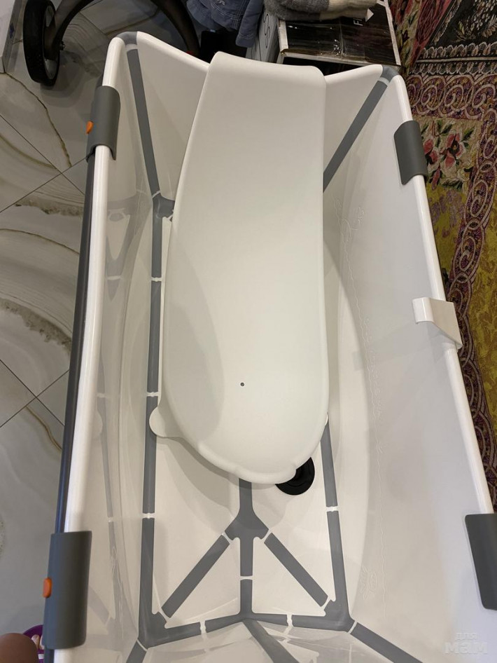 В наличие с подставкой, в комплекте удерживающая горка для малыша, пробка меняющая цвет, если вожу слишком горячая для малыша. Очень удобная вещь. После 1 малыша. Есть коробки от всего. Состояние идеальное.