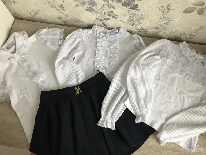 Блузки Фантазеры. Размер 134. Маломерят. Подойдут на 122-128. Цвет белый. В отличном состоянии. По 900 руб.