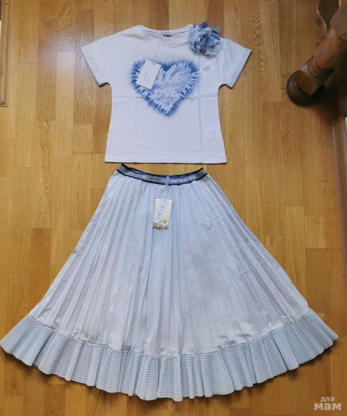 Комплект Elsy из 3-х вещей (юбка+футболка +брошь). Италия.Новый. Размер 14,164. До 160см точно можно носить. 12000р+почта