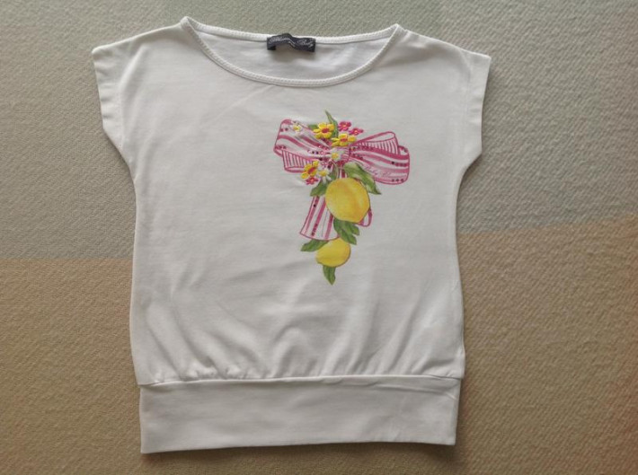 майка Блюмарин, лимончики, отличная посадка за счет нехарактерного кроя, р 2, но носится до роста 110 - 1700р - продана