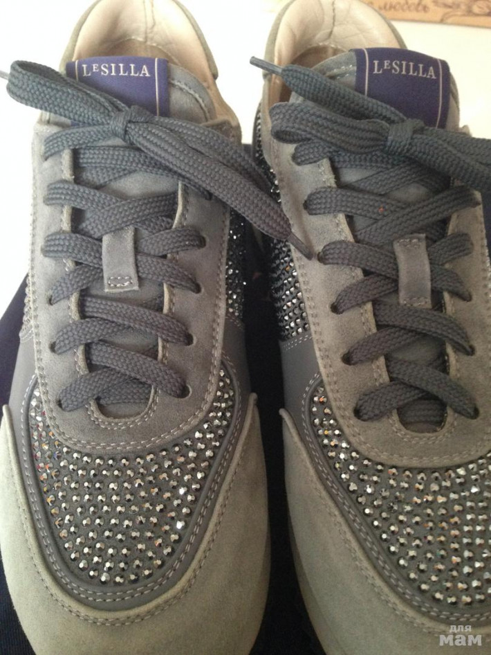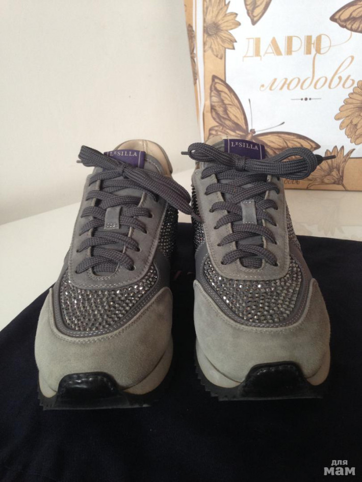 Кроссовки итальянского бренда Le silla, оригинал! Полностью натуральные. Очень красивый цвет, на ножке сидят супер😍 Стразы Swarovski, все до единой на месте) состояние отличное, недочётов нет! Одевались мало, так как размер изначально не совсем подошёл. На размер 37-37,5.