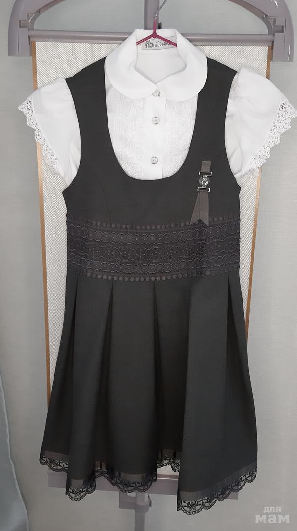 Платье школьное, 134. Есть небольшой "зацвет" ткани, не пятна, природа происхождения не известна. Возможно, исправит химчистка. Цена 400р или подарок к покупке сарафанов