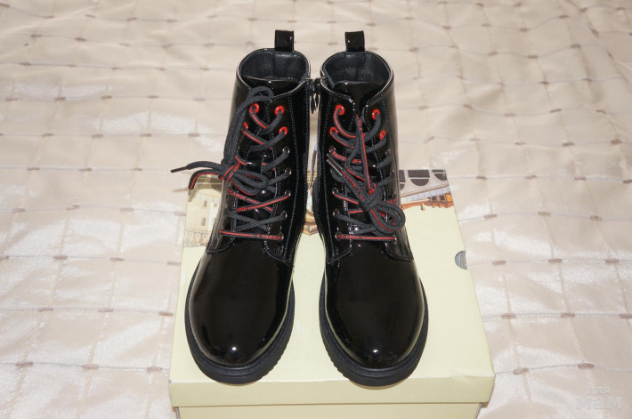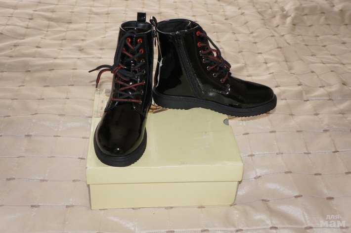 В наличии 2 пары р.34( стелька 22,5 см) и 35 ( стелька 23 см ) . Размеры 30,31,32,33 под заказ. Ждать 4-5 дней. Лак искусственный( износостойкость отличная, носили подобные в прошлом году) , утеплены войлоком.