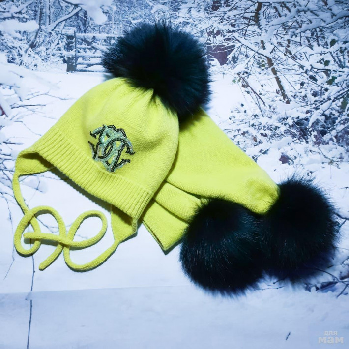 Шапочка декорирована логотипом Roberto Cavalli из хрустальных страз ручной выкладки (черных и радужных).
