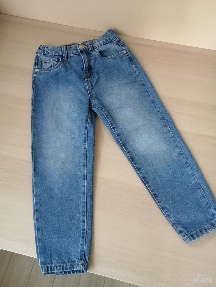 🍭 Джинсы Acoola, модель mom fit - свободной посадки. Размер 122, идут на рост 118-125см. Утяжки в талии нет. Подойдут на девочку нормального телосложения, не очень худую. Сидят свободно, движения не сковывают, но и не очень широкие. 100% хлопок, не тянется, но достаточно мягкий, комфортный. Состояние хорошее, но есть пару светлых, почти не заметных маленьких пятнышек от травы.