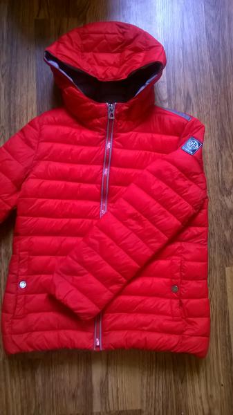 Пуховка Geox разм.8 бу в идеальном состоянии.Цвет не ярко-красный(ближе на фото с ребенком)Одевали до конца ноября.Шарфик теплый Catimini продается отдельно.Приобретено все в Америке.Длина рукава 49,по спинке 50