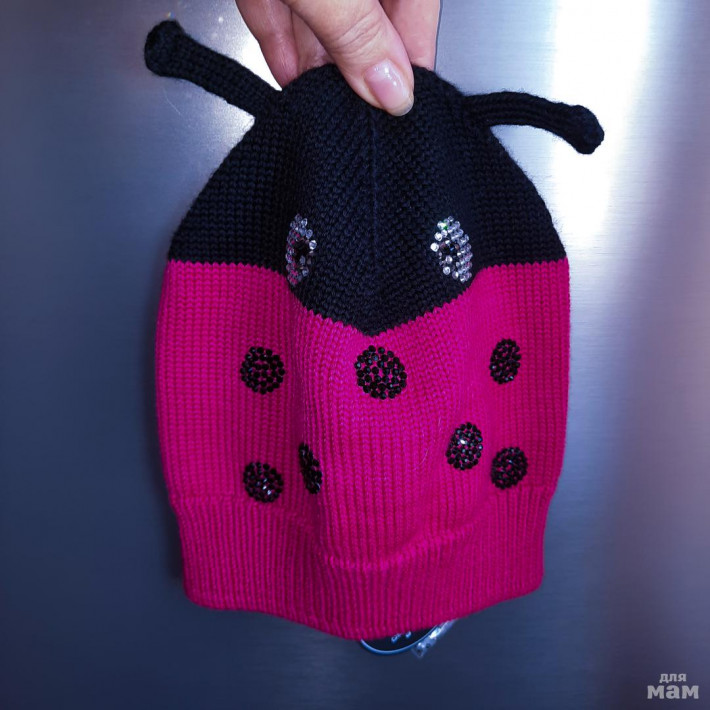 Забавная демисезонная шапочка "Божья коровка" с рожками из 100% мягкого итальянского мериноса