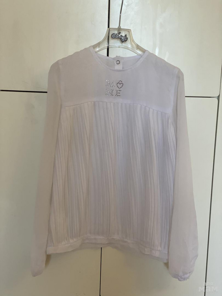 7.Блузка на размер 148-152.Одели пару раз. Отсутсвует одна стразинка, ее не заметно. Камни очень сверкают .Цена 500 руб