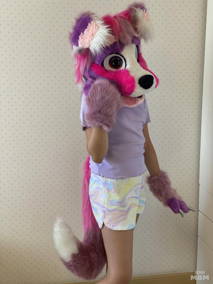 Основа поролоновая,через канву хорошо видно! Хвост одевается на ремень , детали глаз меняют форму за счёт снимающегося века, язычок отстёгивается .