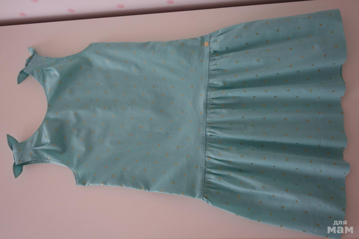 Платье из тонкого хлопка французского бренда Lili Gaufrette р.10, НОВОЕ! но бирка срезана, мятный цвет (фото не передаёт, отсвечивает), горох золотистый, сзади на молнии, подмышки 35 см, длина 73 см, 2500 руб.