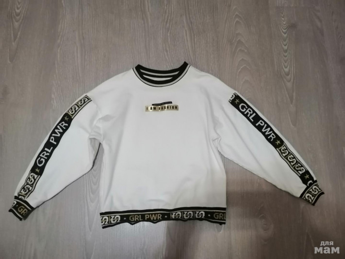 В отличном состоянии. Состав 70 % хлопок, 30% полиэстер. Замеры: ширина в груди 43 см, рукав от шеи 64 см, общая длина 54 см.