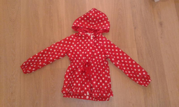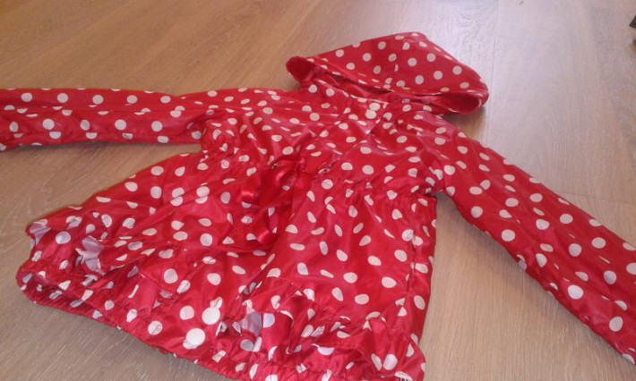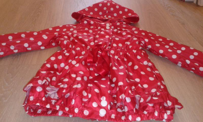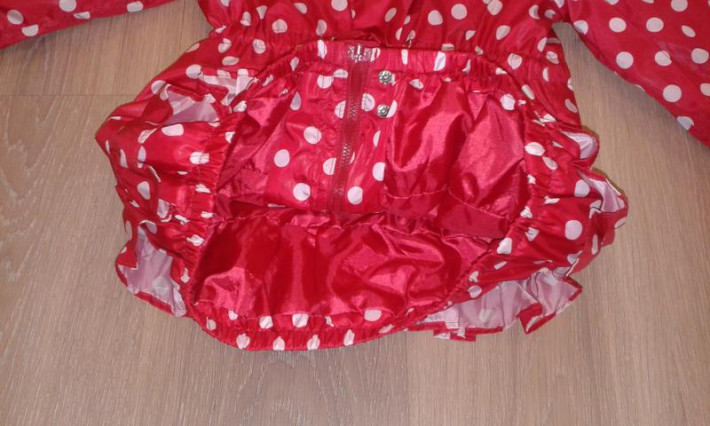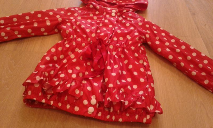 Ветровочка на 4-6 лет на прохладные дни (летом / весной и осенью в тёплое время), внизу резинка, по поясу утяжка-поясок ленточками, карманы, внизу и вверху кроме молнии по 2 кнопки, смотрится по фигуре отлично, манжеты рукавов с резинками, состояние идеальное, следов носки не обнаружила.