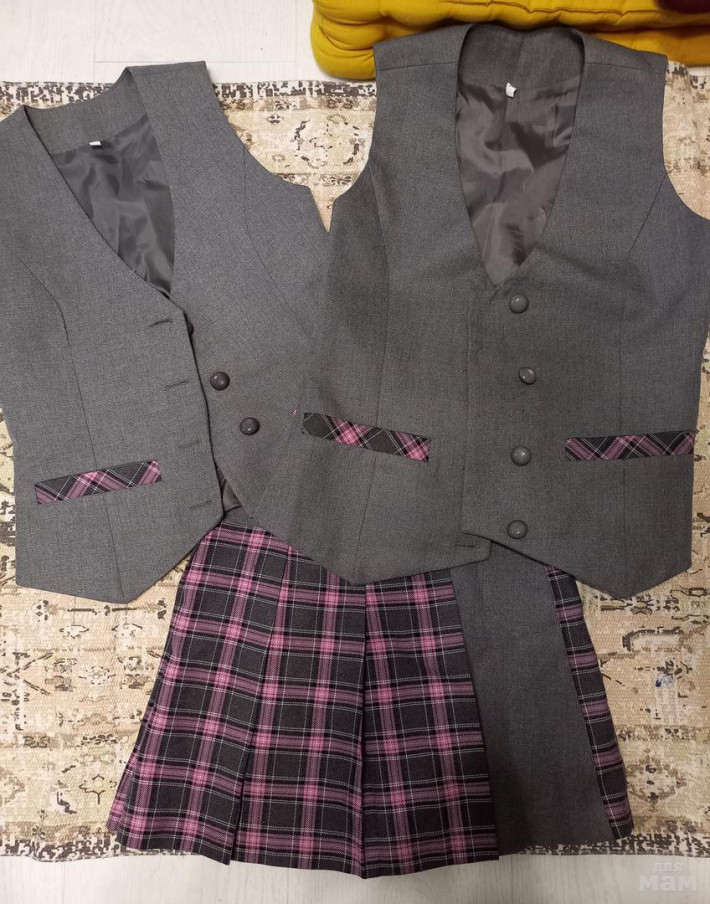Девочки, продаю нашу серую форму. Платья все в отличном состоянии, без нюансов, все постаралась сфотографировать. За качество ручаюсь, это Mone. Юбка плиссе тоже этой фирмы, с утяжкой. Так же предоагаю комбинированное трикотажное платье, удобно в дни, когда физкультура, легко снимать/надевать. Платье англ.фирмы George. В довершении клетчатая юбочка и 2 жилетика разного размера рос.производства.