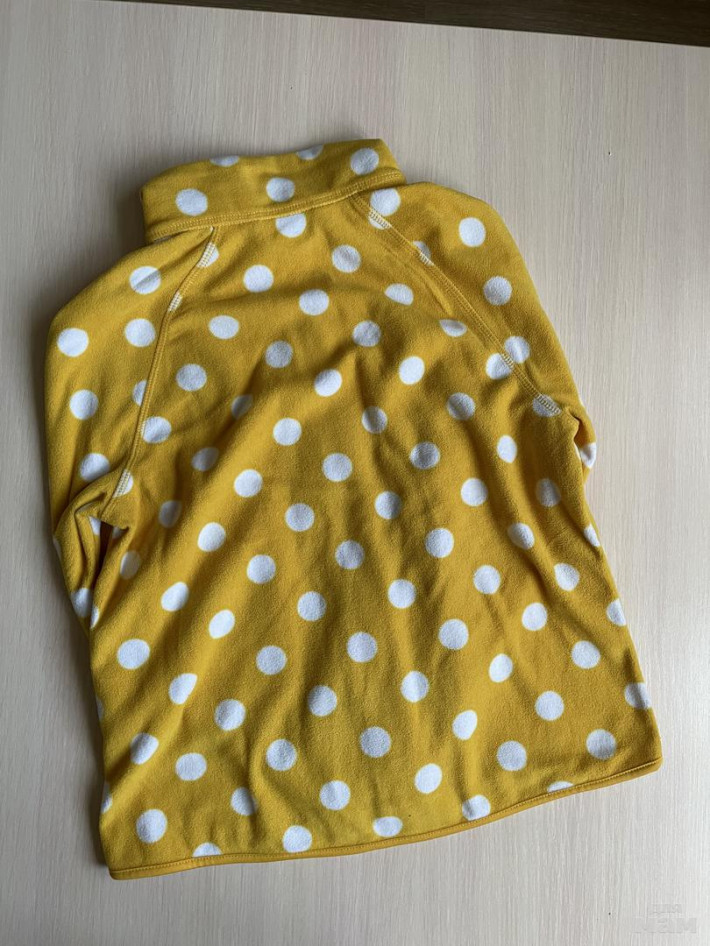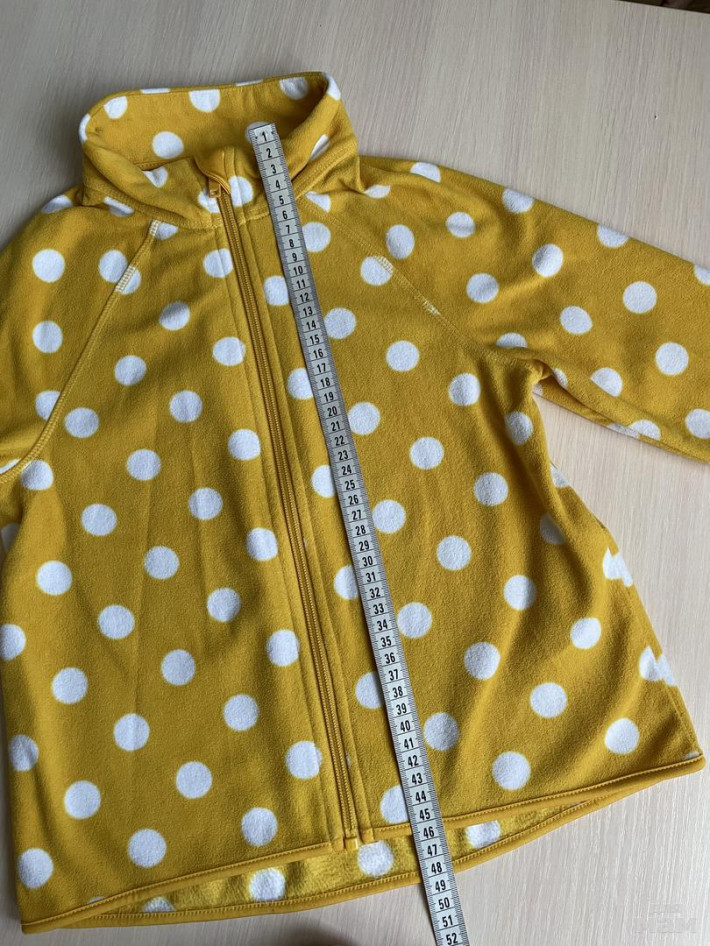 Мягкая, флисовая кофточка на молнии. Размер 122-128, соответствует размеру. Подойдёт до роста 130см. В хорошем состоянии.