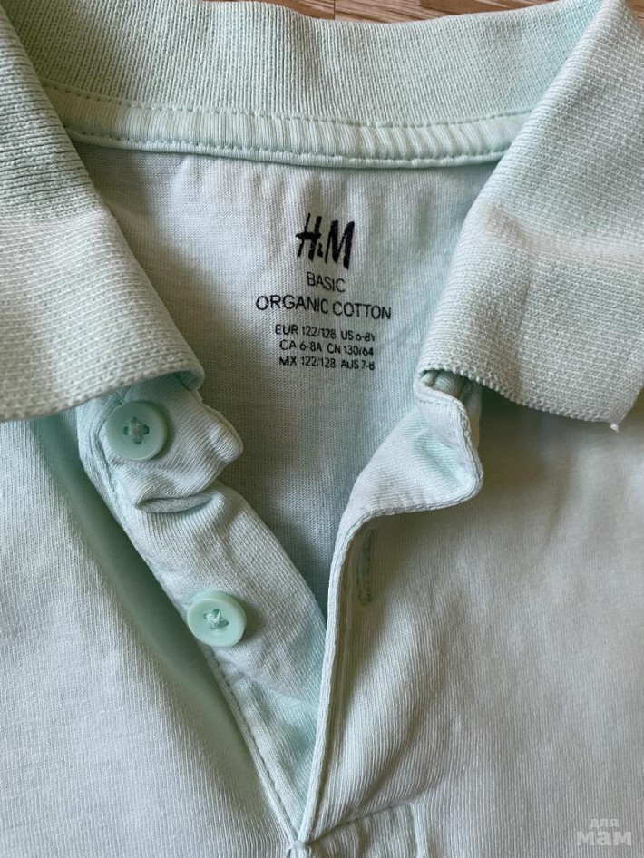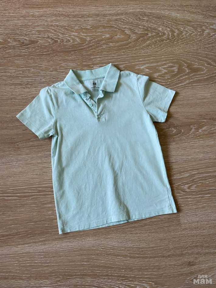 👕 Футболка-поло светлый, ментоловый цвет. H&M. 100% хлопок. Размер 122-128. Для крупных деток можно носить в размер, а худышкам на 128-134 и даже дольше. Сын носил до роста 137см. Замеры есть на фото. Состояние хорошее, без дефектов.