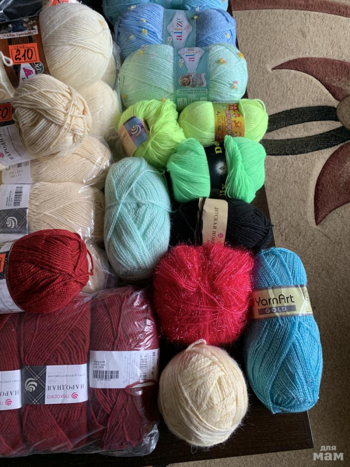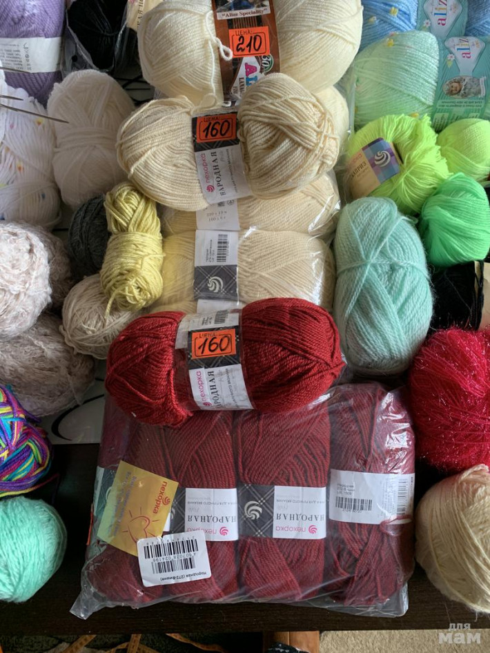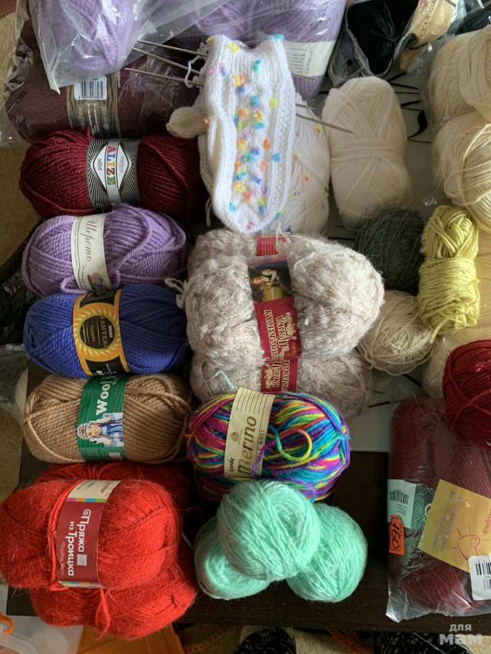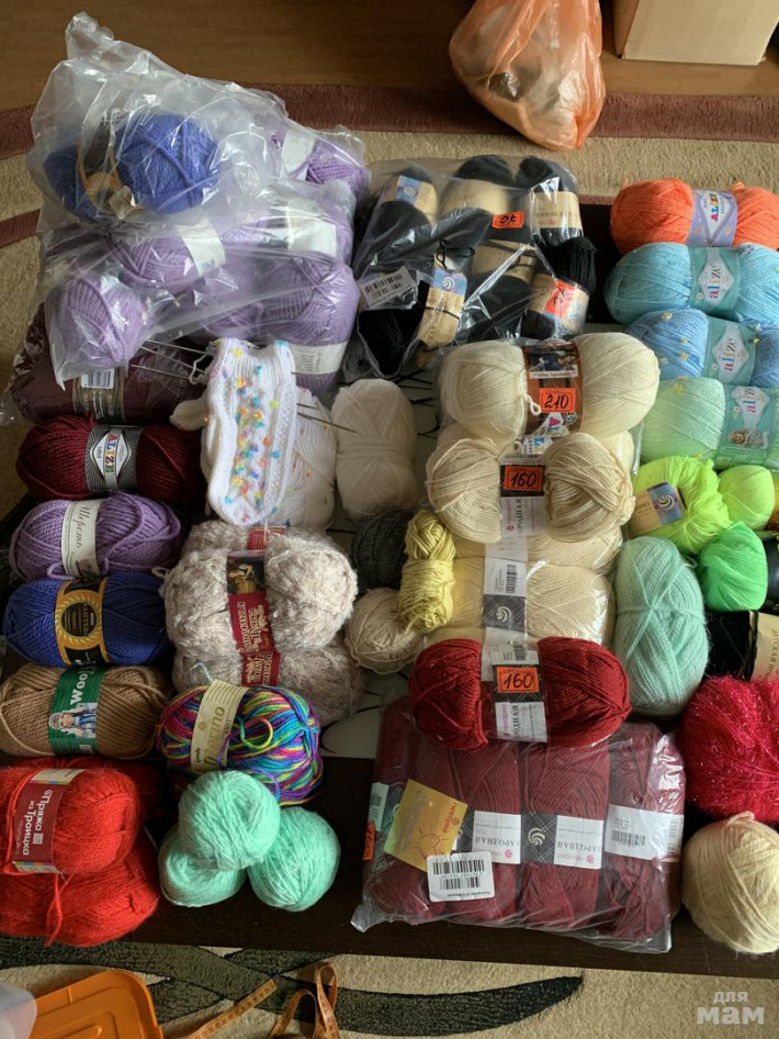 Внучка училась вязать. Есть шерсть, есть детская и др. Цена от 70 до 200₽. Почта и др, самовывоз Павловский Посад