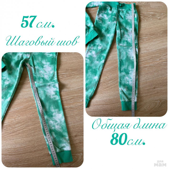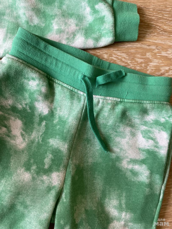 Костюм h&m, худи с капюшоном и брючки. Внутри с начесом. Капюшон внутри на трикотажной подкладке. Красивая расцветка. В талии шнурок, для доп.утяжки. Размер брючек 134, худи -134-140. Носить можно от роста 128см. Худи будет с запасом на этот рост. А брючки, за счет манжетов по низу, будут сидеть хорошо. Состояние хорошее, но есть пару нюансов.