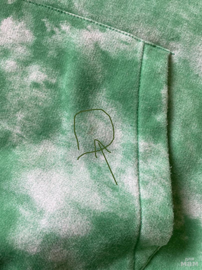 1) Маленькое, светлое пятнышко на кофте, в районе кармана. На фото показала. К сожалению, не удалось отстирать.