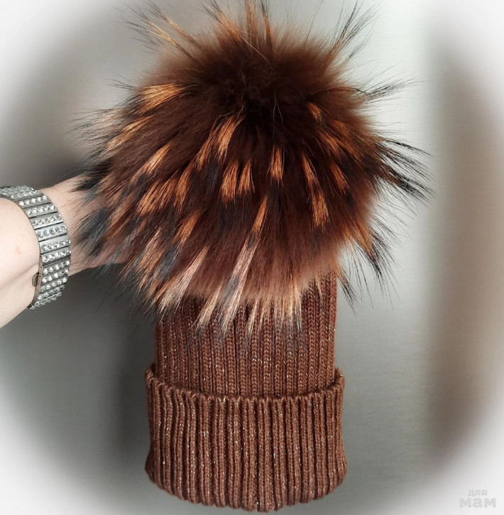 Шикарный помпон из енота двойного тонирования 20,5 см