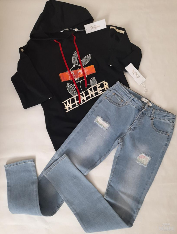 Свитшот чёрный с капюшоном рукав 3/4 Р 158