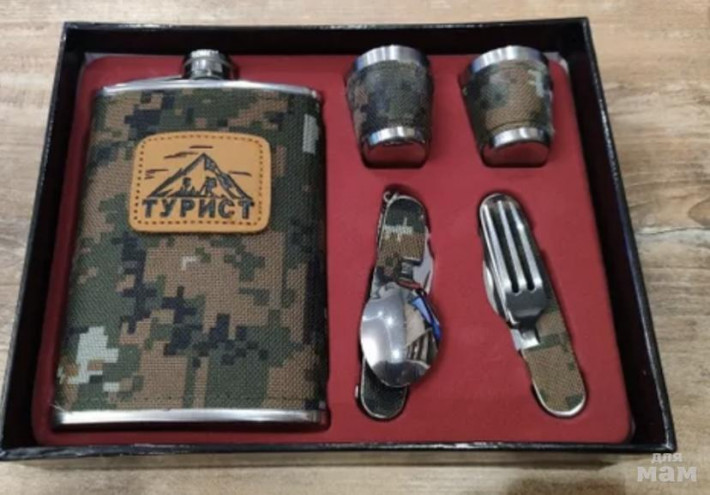 Подарочный набор для мужчины - фляга, стопки, ложка, вилка. Подарок на 23 февраля, 14 февраля день Святого Валентина, юбилей и день рождения!