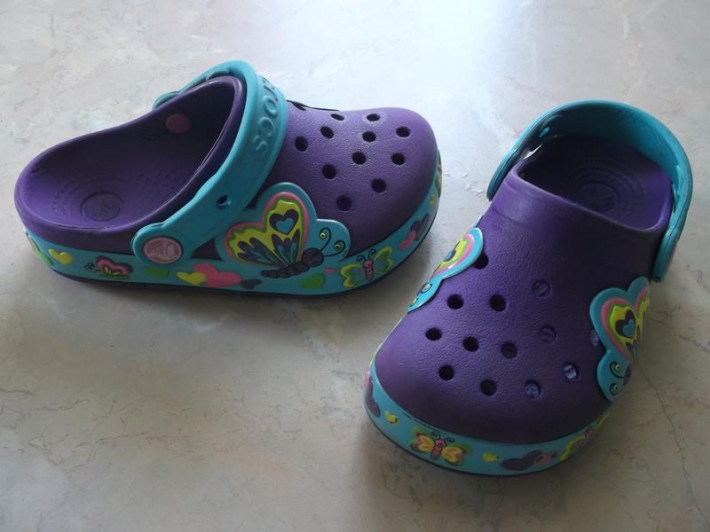 Кроксы в хорошем состоянии, при ходьбе светятся.