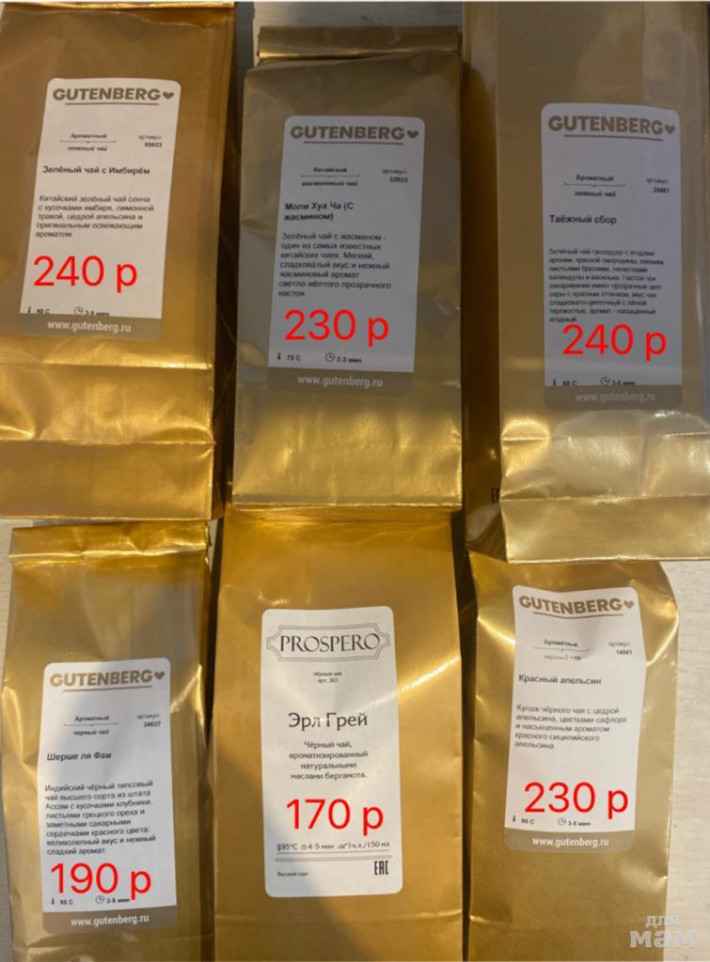 Чайник 300 р, сиропы по 260 р, горячий шоколад 60 р.