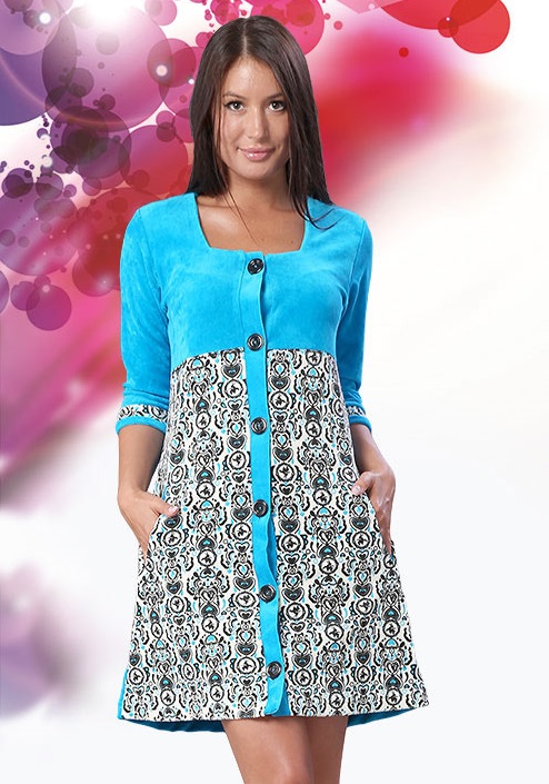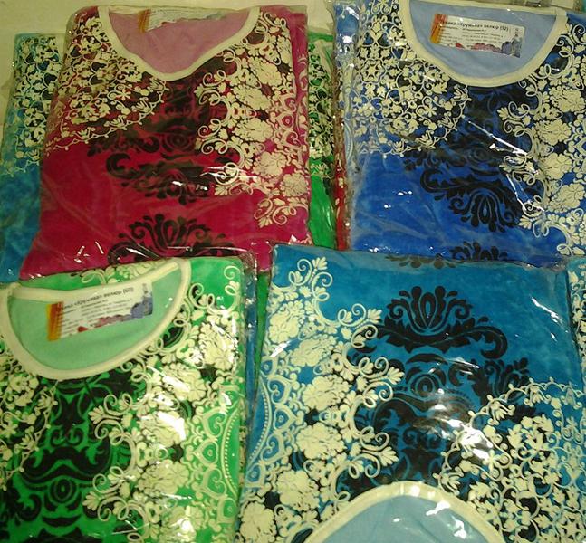 № 123. Халат велюровый. Цена - 800 руб. Размеры: от 44 до 54. Расцветки: голубой, синий, зеленый, красный, малиновый, коралловый