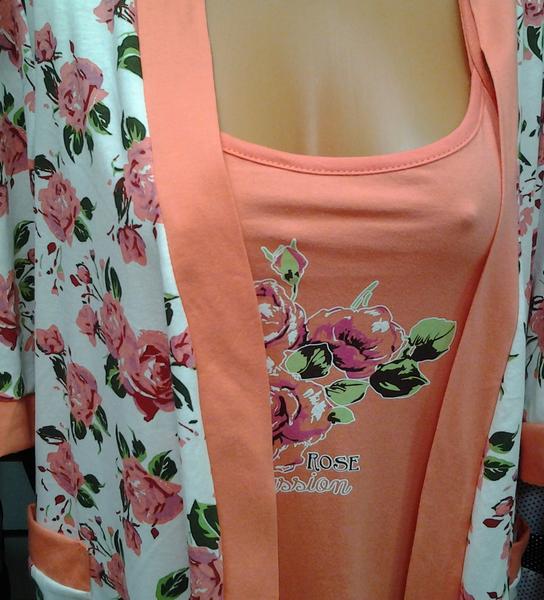 № 304. Домашний комплект (сорочка и халат с поясом). Цена - 700 руб. Размеры: от 44 до 54. Расцветки: розовый, коралловый