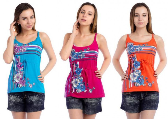 № 227. Комплект с шортами. Цена - 450 руб. Размеры: от 42 до 54. Расцветки: голубой, бирюзовый, розовый, малиновый, коралловый