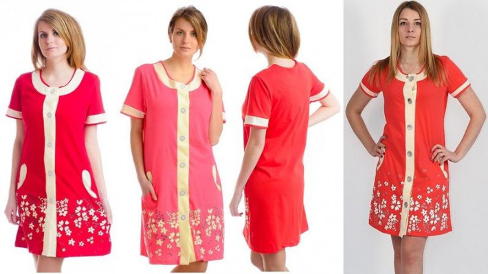 № 290. Халат. Цена - 520 руб. Размеры: от 44 до 54. Расцветки: красный, малиновый, розовый, голубой, синий, коралловый