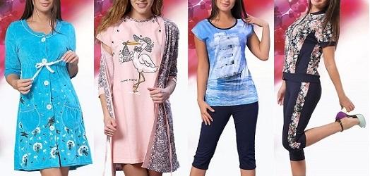 № 320. Домашний комплект (халат на завязках и сорочка для кормления ребенка). Цена - 760 руб. Размеры: от 44 до 58. Расцветки: розовый, бирюзовый