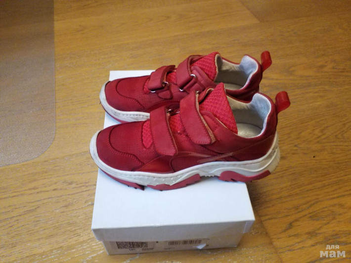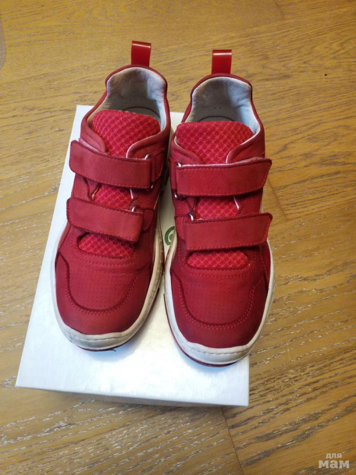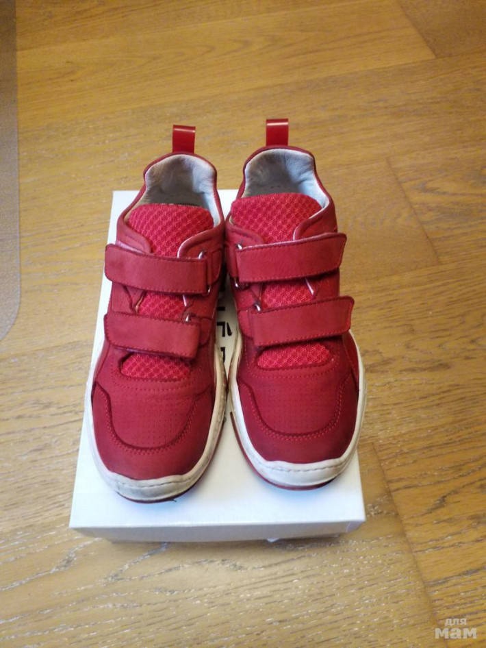 Шикарные кроссовки Итальянской фирмы CHERIE. Натуральный нубук. Размер 34, стелька кожаная вытаскивается 22 см. Прошитые. Внутри натуральная кожа. На двух липучках. Подошва не стерта. Носили мало. Покупала за 18700 р. В живую темнее чем каталожное фото. Цвет красный. Состояние очень хорошее. На ноге сидят стильно и удобно. Модель унисекс.