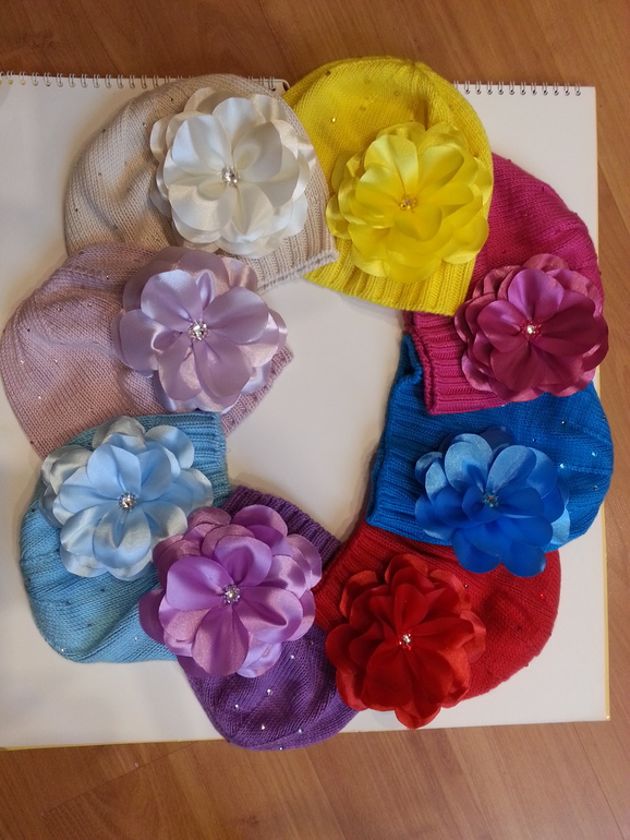 Шапочки бамбуковые (сезон теплая весна/осень, лето) с украшением ручной работы