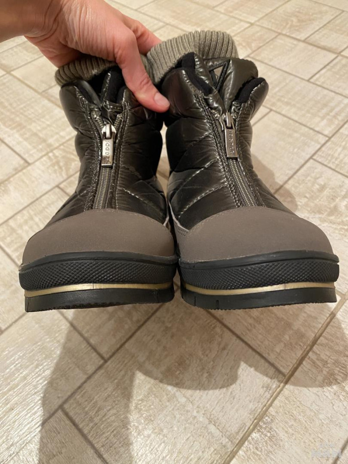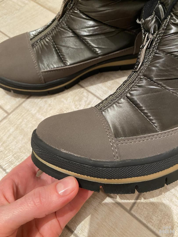 Ботиночки Jog dog, абсолютно новые! Только примерялись. Размер 35. Очень теплые, обязательно приобретаем такие каждую зиму, ножки не мерзнут на долгих прогулках. Есть небольшие нюансы в виде следов клея, небольшой потертости и полосочек на ткани (не дырочки! Ткань не расходится!). Фото приложила. В носке не заметны и на функционал обуви ни как не влияет. На высокий взъем не подойдут! Видео сделаю при необходимости, пишите)