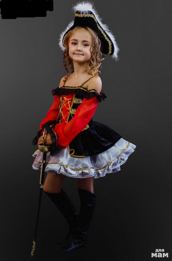 Новогодний костюм пиратки (платье и треуголка), размер 122, подойдёт от 116 до 128. В состоянии нового. Покупали за 5800, отдам за 4000 + почта.