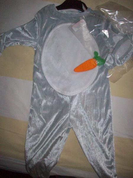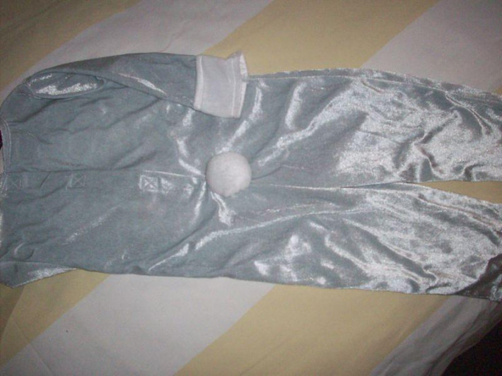 Зайчик, р.18-24 мес., тонкий велюровый комбезик + ушки, 500 руб.