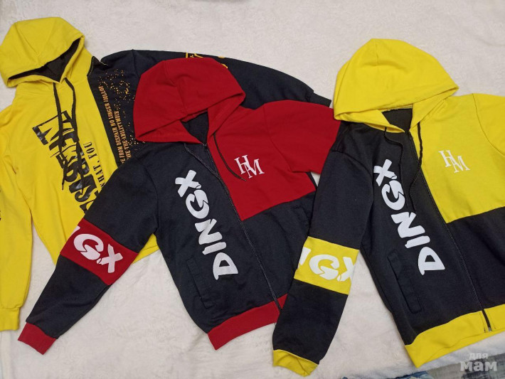 Спортивные кофты на мальчик Х/Б, 3 штуки разных расцветок, очень яркие.1) желтая на замке:рукав- 55см