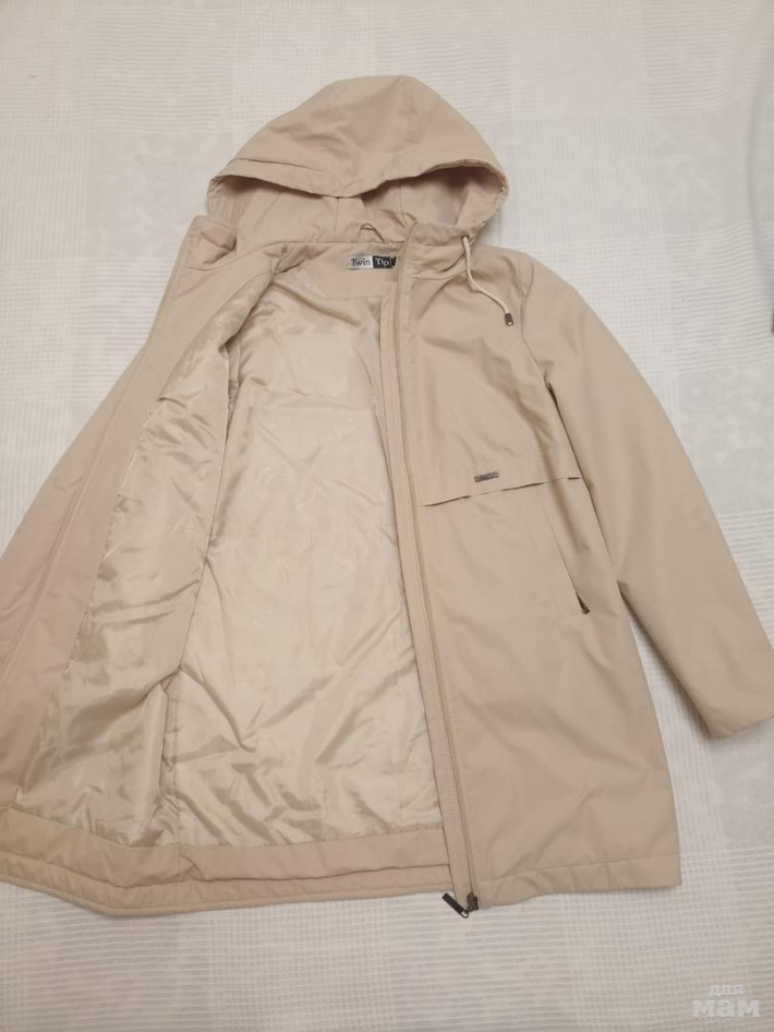 Женское осеннее удлиненное пальтишко(ветровка) спокойного светло-бежевого цвета известной фирмы TWIN TIP ( Беларусь)