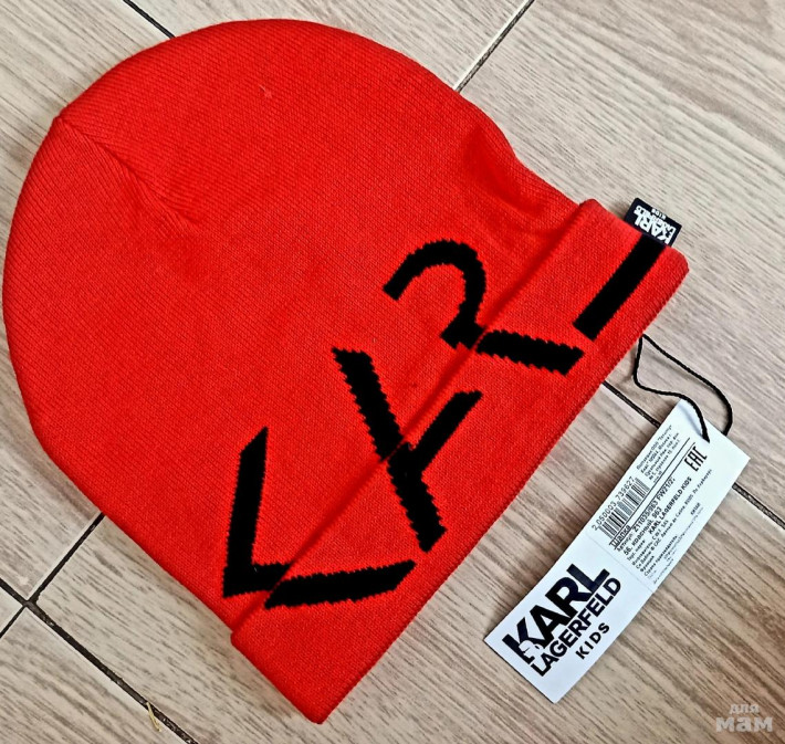 Стильная тоненькая шапочка KARL LAGERFELD ОРИГИНАЛ (Франция) р.56. Красного цвета со стилизованной надписью KARL спереди. Шапочка из двойного полотна с отворотом, моделька бини. Посадка изумительная. Яркая, стильная, удобная. Состав: 55% полиамид, 20% полиэстер, 19% хлопок, 6% шерсть.
