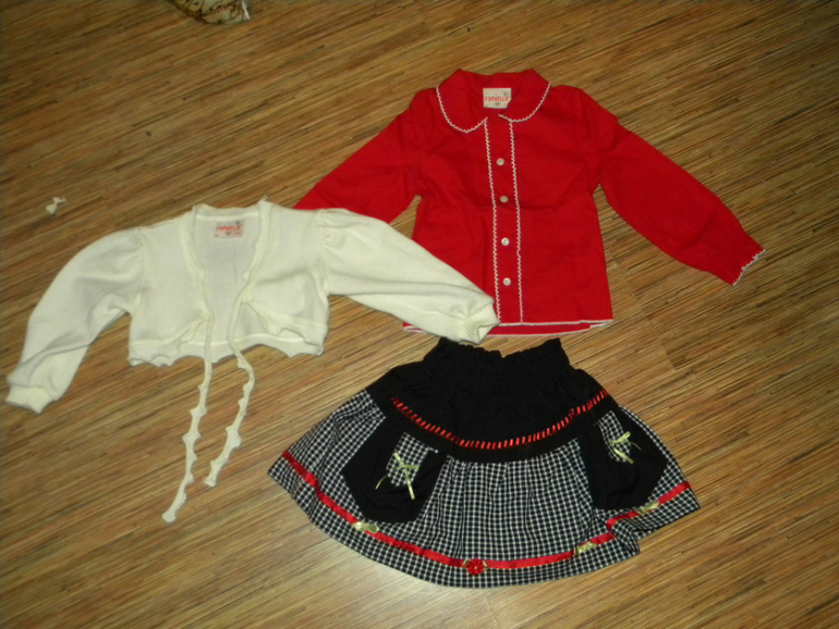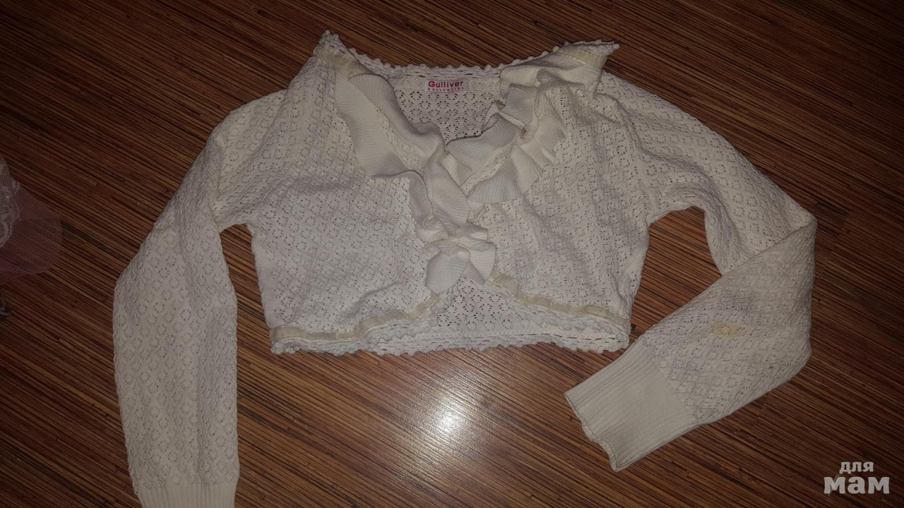 54.Комплект- тройка, Турция : рубашка стрейч-хлопок, юбка и болеро вязаное. Рубашка новая, не одевали, юбка в отличном состоянии, болеро в хорошем состоянии. Маркировка 98см, можно раньше. Цена за комплект 550руб.( покупала за 2000руб.) На рост 92-98см. Ло 104см можно одевать