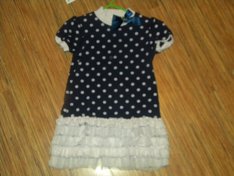 44. Платье Colabear Маркировка 106см, полноразмерное . Горошинки побледнели, и чуть полиняло платье под бантом спереди, почти незаметно. Цена 200руб. Плотный трикотаж